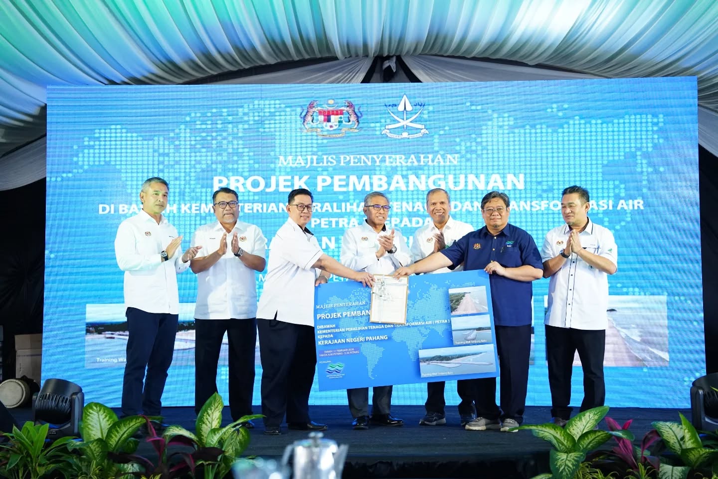 Turut hadir menyaksikan majlis bersejarah ini ialah YBhg. Dato’ Sri Haji Mad Zaidi bin Mohd Karli, Ketua Setiausaha Kementerian Peralihan Tenaga dan Transformasi Air (PETRA), YBhg. Dato' Ali Syahbana bin Sabaruddin, Timbalan Setiausaha Kerajaan (Pembangunan) Negeri Pahang serta dif-dif jemputan yang lain.