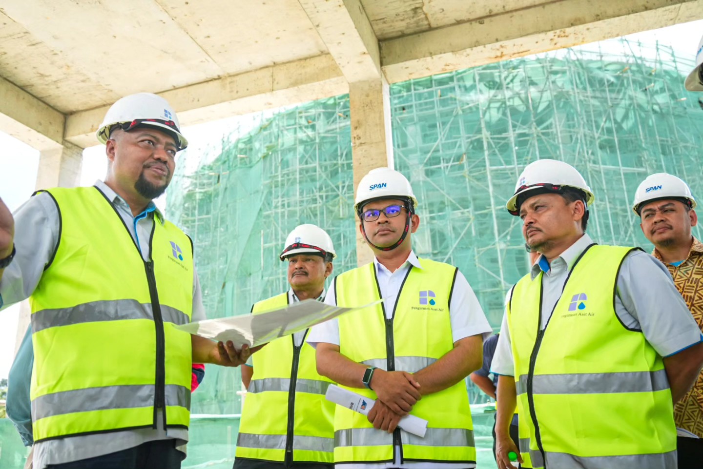 Selesai mesyuarat, YB Timbalan Menteri meneruskan lawatan tapak ke projek NRW Nasional (Tangki Imbangan Pasir Tumboh) serta tapak pembinaan Loji Rawatan Air (LRA) Chicha 2.